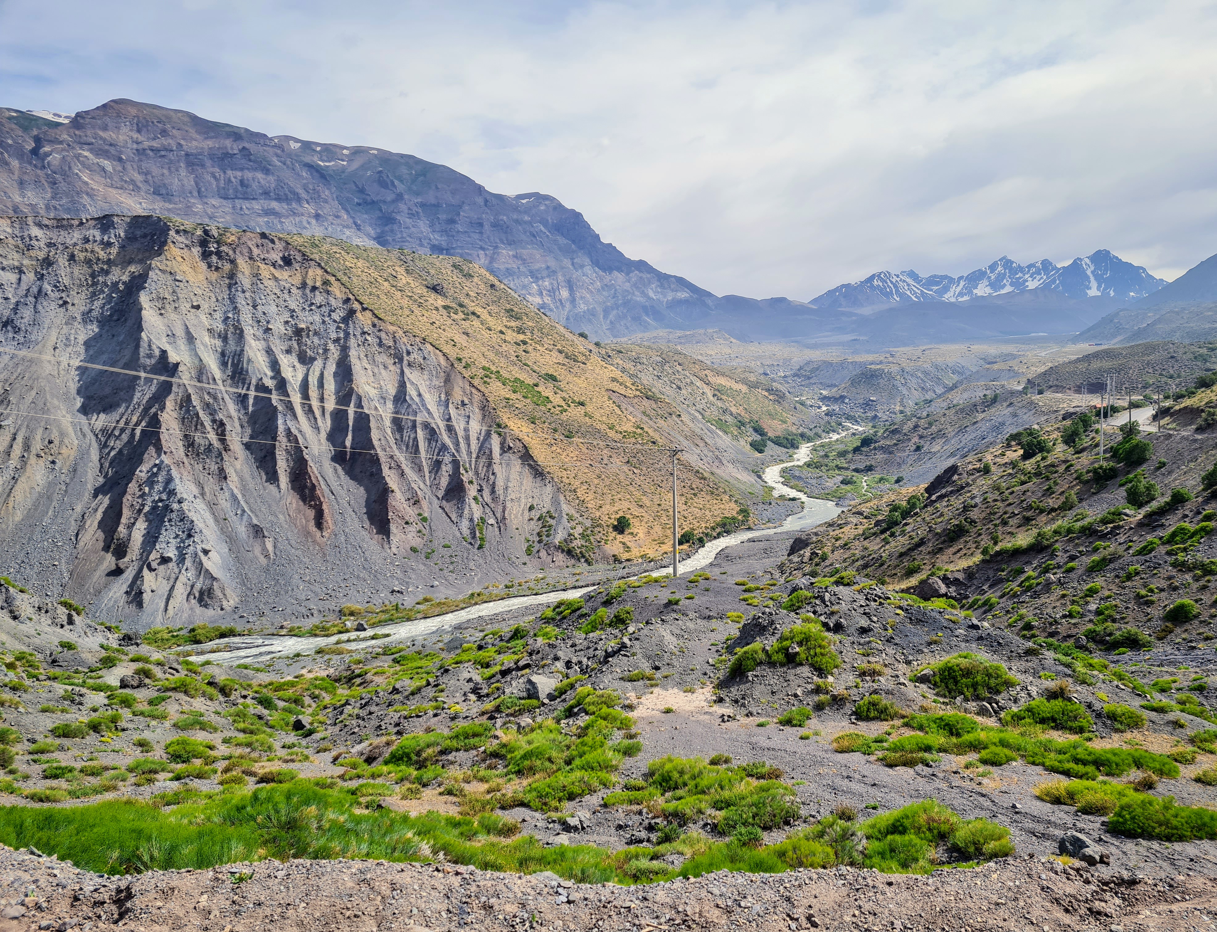 Our trip out to the Cajon (Canyon) de Maipo took us close to the Andes mountains. We saw glaciers and rivers. The Vulcan River is a chocolate brown colour and as it passes by the several volcanoes the heat destroys all things living, so it is called the Dead River. It’s used for recreational sports. The El Yeso- living river- is the drinking supply for Santiago and teems with life. It looks whiteish green because of its glacier beginnings. The two rivers travel down the mountain separately.